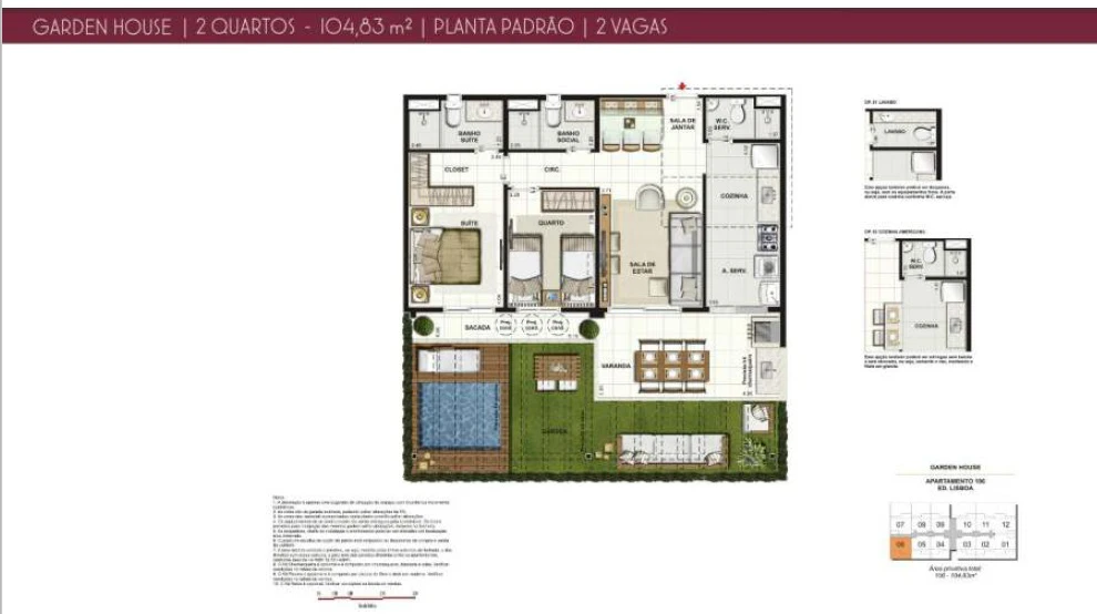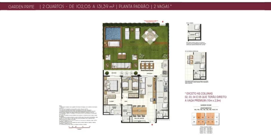Apartamentos de 2 Quartos Garden de 102m² até 131m² - 2 Vagas.