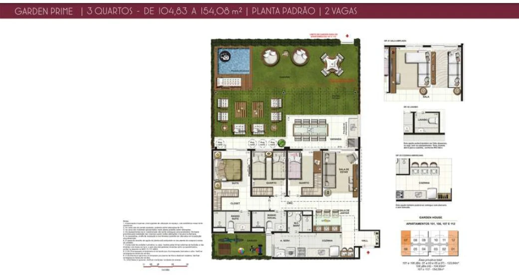Apartamentos de 3 Quartos Garden de 104m² até 154m² - 2 Vagas.