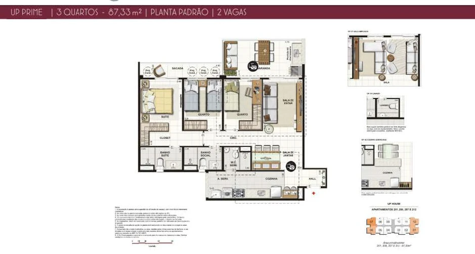 Apartamentos de 3 Quartos de 87m².