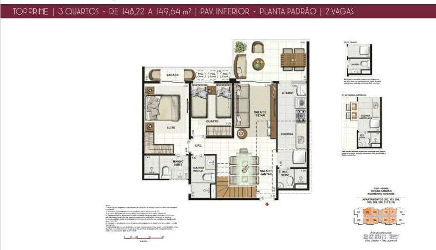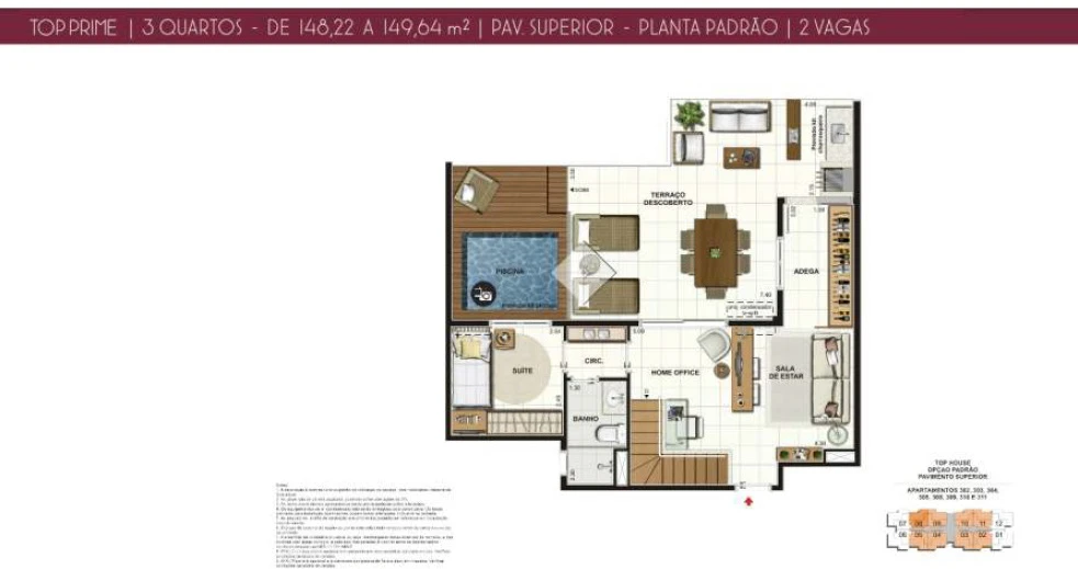 Coberturas de 2 Quartos com 148m²;